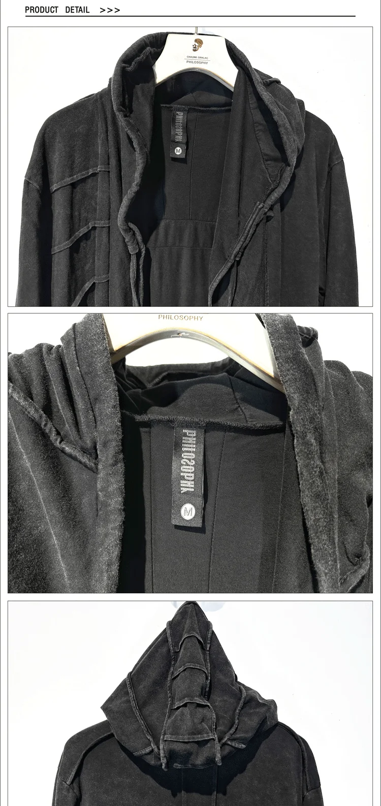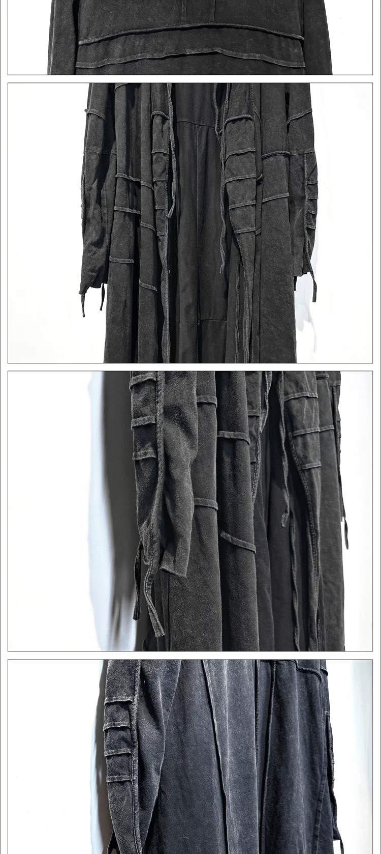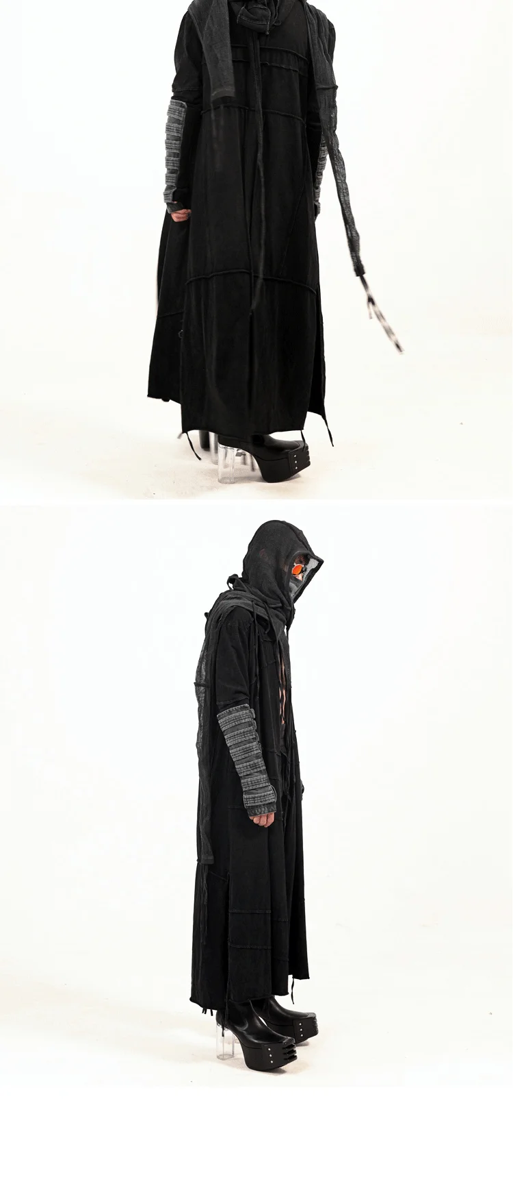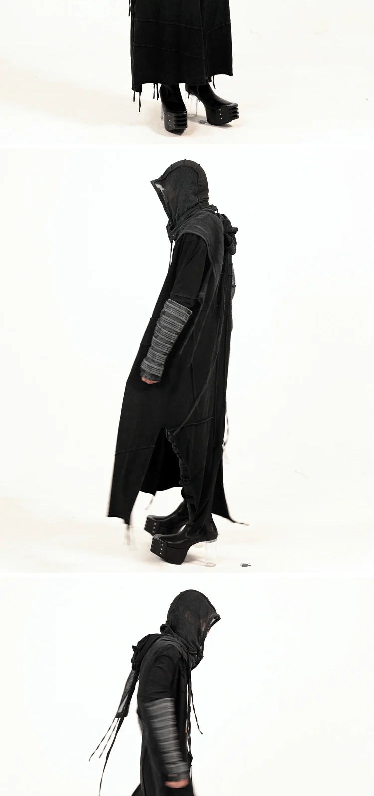 Vintage Men's Distressed Hooded Cape Hanging Vertical Cut Long Windbreaker Darkw